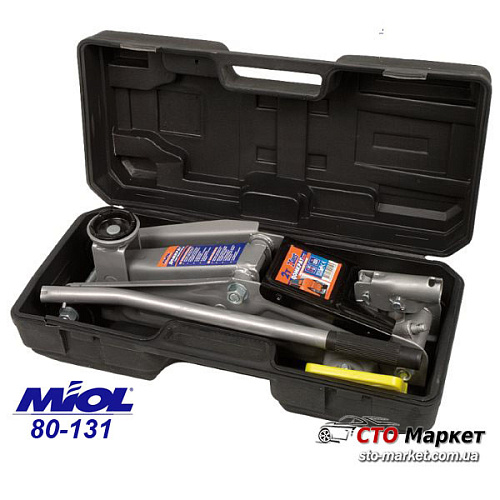 Домкрат подкатной 2 т Миол (80-131) достаточно компактный, прост в эксплуатации и легко перемещается, благодаря наличию колес и удобного чемодана для переноски. Модель 80-131 оснащена одинарной ручкой. Работать с этим домкратом можно даже на неровных поверхностях, так как он высоко устойчив к перекосам и он подходит для автомобилей с небольшим клиренсом. При работе домкрата используется слабо подверженное сжатию специальное масло (индустриальное АИ).