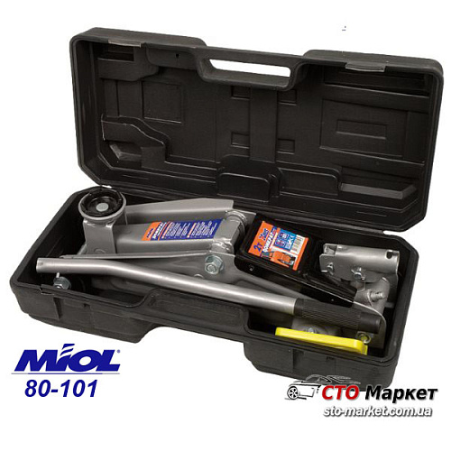 Домкрат гидравлический 2 т фирмы Миол (Код 80-101) используется при подъеме автомобилей и прочих грузов во время выполнения ремонтных и монтажных работ. Благодаря наличию колес легко перемещается, имеет небольшие размеры, прост в эксплуатации. Данная модель снабжена одинарной ручкой. Возможно работать даже на неровных поверхностях. При работе домкрата используется слабо подверженное сжатию специальное масло (индустриальное АИ). Домкрат упакован в пластиковый кейс для удобства транспортировки и хранения.