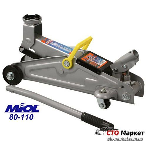Домкрат подкатной гидравлический 2 т, Миол (Код 80-110) используется для подъема автомобилей и других грузов. Удобен в эксплуатации, компактен. Комплектуется одинарной ручкой. Устойчив к перекосу. В домкрате Miol 80-110 используется слабо подверженное сжатию масло (индустриальное АИ).