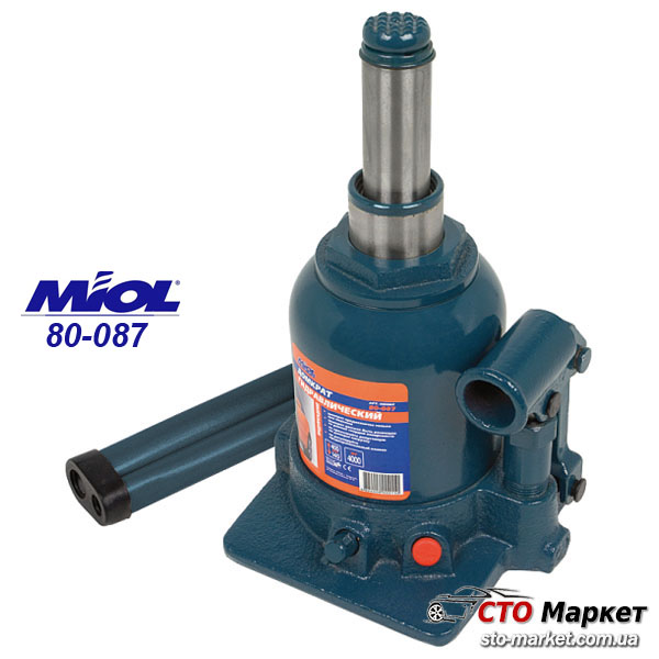 Домкрат 80-087 фирмы Миол предназначен для подъема автомобилей и других грузов при выполнении ремонтных и монтажных работ. Оснащен ручным приводом плунжера, обеспечивающего плавный ход при небольшом рабочем усилии. Внутри штока расположен компенсирующий винт. В домкрате применяется слабо подверженное сжатию специальное масло (индустриальное АИ) Домкрат бутылочный имеет встроенный насос со съемной рукояткой. Сварная конструкция, гидравлического домкрата, предусматривает минимальное количество уплотнений, что обеспечивает высокую надежность. Гидравлический домкрат бутылочного типа: большая грузоподъемность в сочетании с небольшим рабочим усилием высокий КПД жесткость конструкции плавность хода точность и плавность торможения. Основными рабочими элементами гидравлических домкратов являются корпус, плунжер (поршень), рабочая жидкость (гидравлическое масло). Корпус домкрата является одновременно направляющим цилиндром для поршня и резервуаром для рабочей жидкости. Предназначен для подъема транспортных средств при замене колес или проведении ремонтных работ. Обеспечивает удержание на заданной высоте при небольшом рабочем усилии. Прост в обслуживании, имеет компактную конструкцию. Оснащен ручным приводом (в комплект входит ручка, состоящая из двух частей). Особенностью данной модели является двухштоковая система, дающая возможность поднять автомобиль с малым клиренсом и на большую высоту. Отличается компактностью конструкции, простотой...
