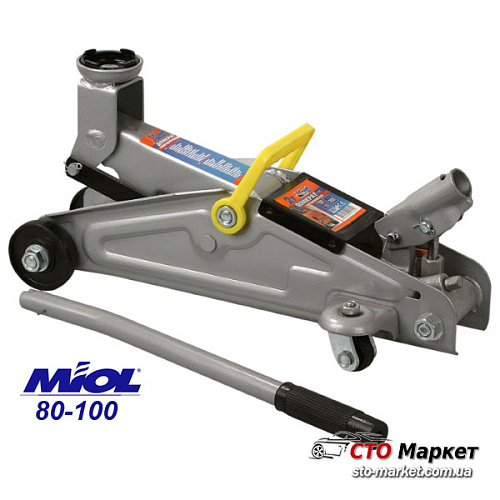 Домкрат подкатной гидравлический 2 т с одинарной ручкой фирмы Миол (80-100). Предназначен для подъема автомобилей. Поставляется в пластиковом кейсе. Удобен и прост в эксплуатации, компактен. Комплектуется одинарной ручкой. Очень устойчив к перекосу. В домкрате Miol 80-100 используется слабо подверженное сжатию специальное масло (индустриальное АИ). Используется для подъема автомобилей и других грузов при проведении монтажных и других ремонтных работ.