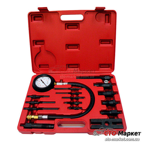 Компрессометр фирмы Profline код 31020-1 для дизельных двигателей. В комплектацию компрессометра входит комплект адаптеров для подключения компрессометра. Адаптеры устанавливаются на головке блока цилиндров двигателя в отверстия для топливных форсунок (вместо форсунок) или в отверстия для свечей накаливания (вместо свечей). Для обеспечения точности измерений и предотвращения поломок при установке адаптеров не допускайте попадания посторонних предметов, грязи, стружки и др. на присоединительные поверхности, резьбу и в отверстия.