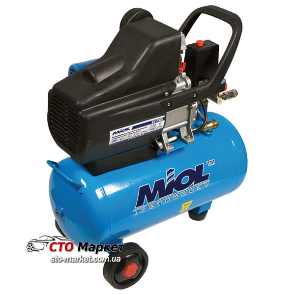 Компрессор Miol 81-152 подает максимально до 206 литров в минуту при ресивере с объемом в 24 литра. Вы сможете с этой моделью работать со всеми видами пневмо - инструмента, таких как: краскопульты, подкачки, аэрографы, пескоструйки и тд.