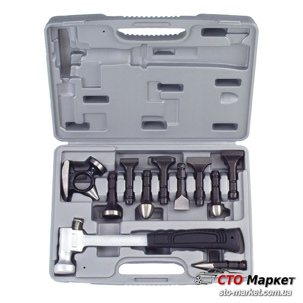 Набор рихтовочных приспособлений 11 ед. включает в себя рукоятку со сменными наконечниками.