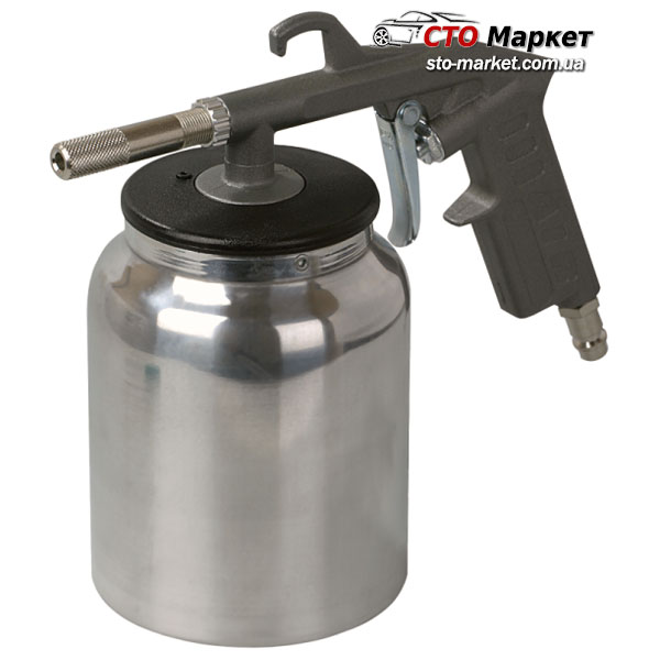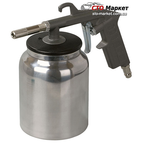 Пневмопистолет пескоструйный фирмы Миол (81-546) с нижним металлическим баком. Пистолет применяют в случае если необходимо сделать очистку поверхности от загрязней, краски, стойких загрязнений. При проведении очистительных процедур используют промытый кварцевый песок или специальная абразивная смесь.