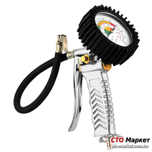 Предназначен для накачки сжатым воздухом максимальным давлением 12 атм емкостей и воздушных камер, измерения давления воздуха и стравливания его избытка. Подходит для профессионального использования в автомастерских. Длина шланга 50 см.