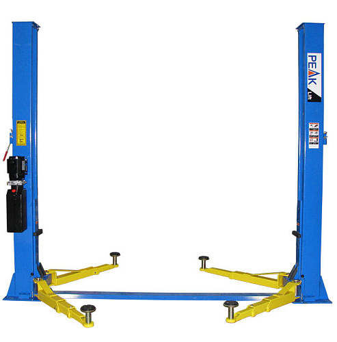2-х стоечный электрогидравлический, симметричный подъёмник автомобильный с напольной рамой для СТО с ограниченной высотой потолков (нижняя синхронизация).