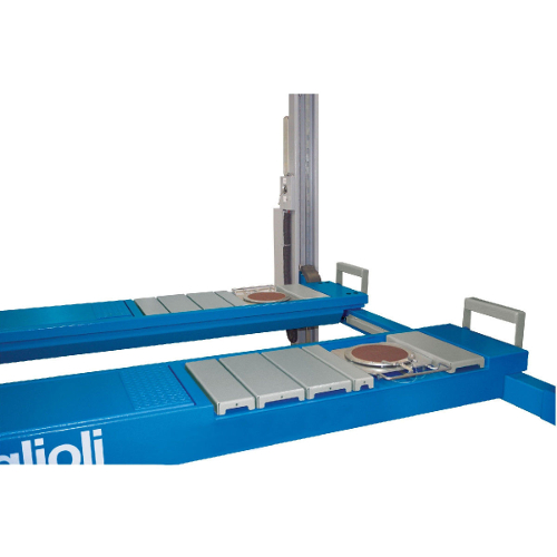 Платформы для общей регулировки углов установки колес, с передними углублениями под поворотные круги и задними пластинами скольжения с поперечным и угловым перемещением в обоих направлениях.