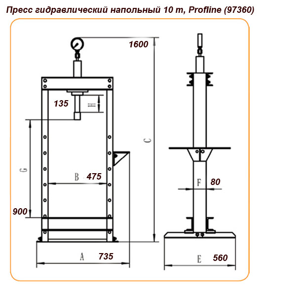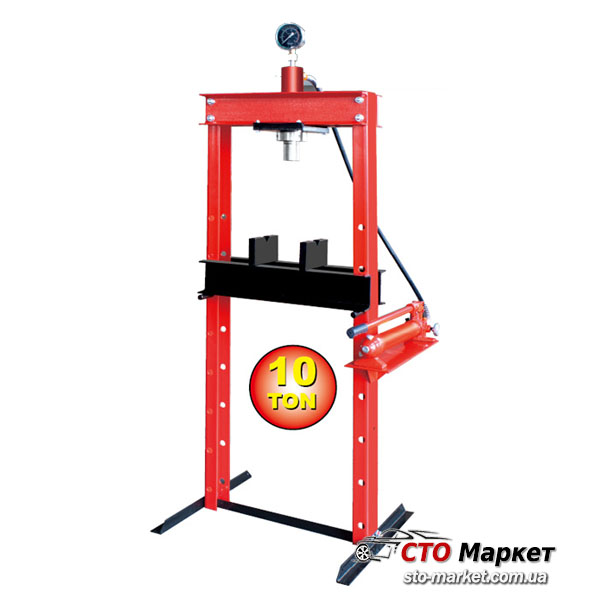 Гидравлический пресс 10 тонн напольный (Код 97360) применяют на станциях технического обслуживания и в автомастерских. Имеет сварную конструкцию, благодаря чему будет Вам надежным помощником в работе длительное время.. Вы сможете его использовать для снятия и установки зубчатых колес, универсальных соединений, шкивов, поршневых пальцев и т.п., а также для сгибания, распрямления и соединения деталей. Максимальное усилие при работе пресса гидравлического напольного 10 т.