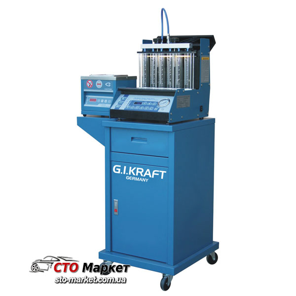 ультразвуковую ванну, расположенную на тележке с колесиками, что позволяет ей свободно перемещаться. Очистка форсунок происходит с длительностью импульсов в пределах от 0 до 20 мс, при диапазоне импульсов от 0 до 9950 с шагом 50. Диапазон оборотов двигателя от 0 до 9950 оборотов в минуту.