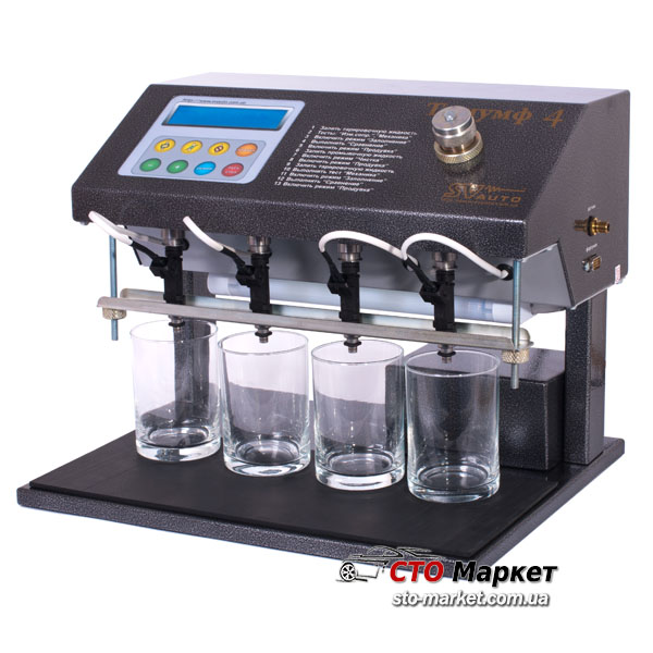 SVauto™ серии Триумф 4 предназначен для чистки и проверки форсунок. Одновременно можно проводить работу с 4-мя инжекторами. В стенде имеется встроенный воздушный компрессор, но он использует давление до 0,3 Атм. Эта особенность имеет свои плюсы и минусы. Из положительного, Вам не нужно отдельно покупать дорогой воздушный компрессор. А отрицательным является, то что Вы не можете протестировать работу и производительность инжекторов на таком же давлении, как в реальных условиях.