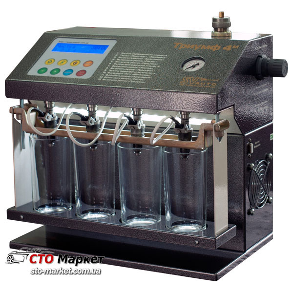 SVauto™ серии Триумф 4М предназначен для очистки и проверки инжекторов. Одновременно можно работать с 4-мя форсунками. Функционал и возможности полностью идентичны со стендом Триумф 4. Основное отличие это использование внешнего воздушного компрессора (поставляется опционально) для создания давления в топливной рампе. Так же увеличен бачок для чистящей жидкости до 0,75 л. и добавлен регулятор давления, теперь возможны регулировки в диапазоне от о до 5 Атм.